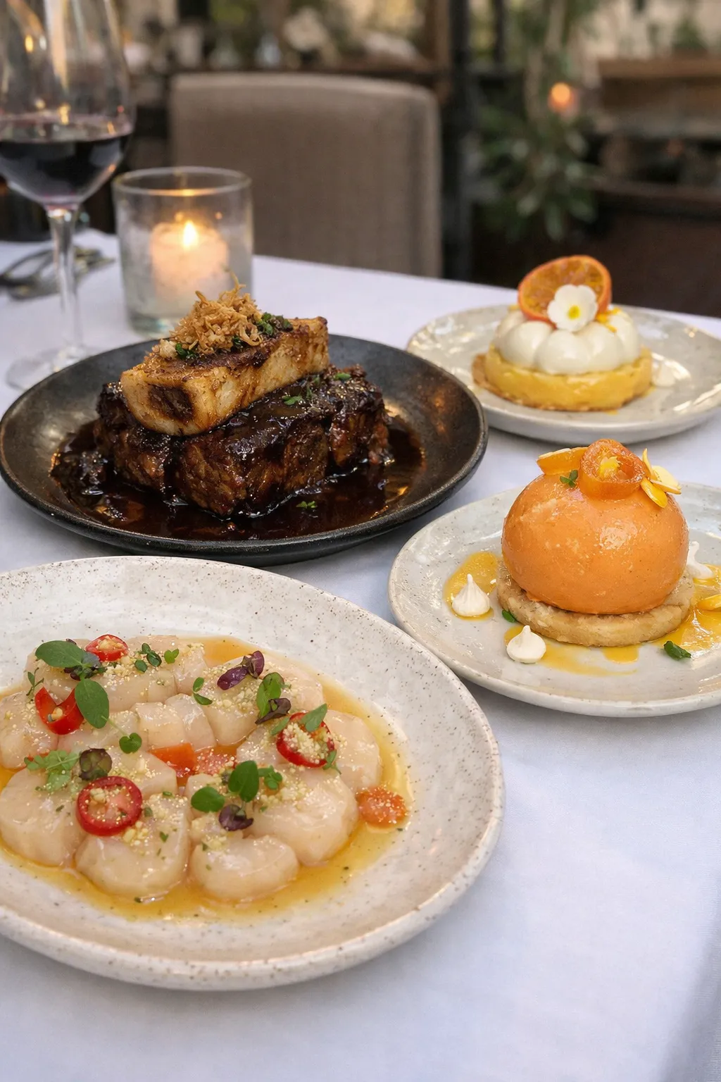 A four-course prix-fixe menu that changes weekly and is never published in advance. Recent highlights have included scallop crudo with finger lime, wagyu short rib with bone marrow bordelaise, and refined citrus-forward desserts that reflect the season. - Best For