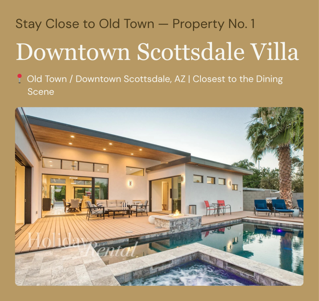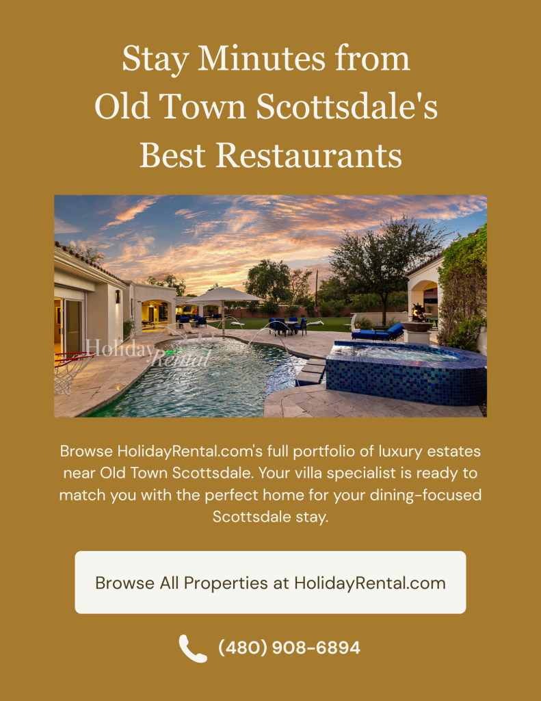 For guests staying at a HolidayRental.com luxury estate, proximity to this dining scene is one of the most compelling features of a Scottsdale vacation. Unlike a hotel situated in a single fixed location, a well-chosen private rental can put you within five or ten minutes of the restaurants at the top of every food writer’s list — while providing the kind of private kitchen, outdoor dining terrace, and gourmet home cooking capability that turns every meal of the trip, not just the nights out, into something remarkable.
