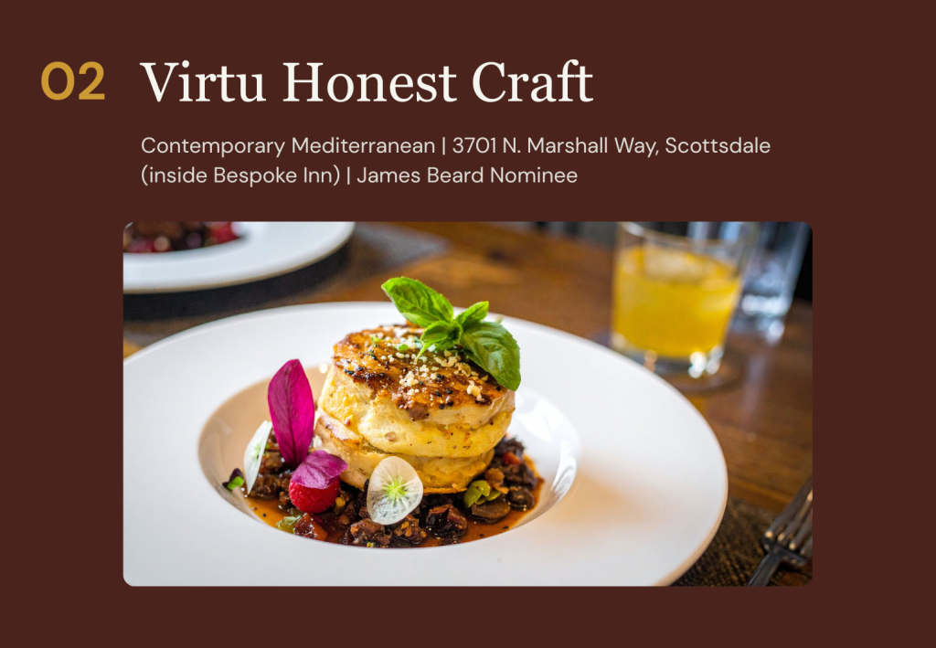 Some restaurants are defined by their accolades. Others are defined by the feeling they create — the specific quality of an evening that leaves you more interested in the world than when you arrived. Virtù Honest Craft is the rare place that manages both simultaneously. Tucked inside Old Town Scottsdale’s charming Bespoke Inn, Chef Gio Osso’s intimate restaurant has been one of the most revered fine dining destinations in Arizona since the day it opened in 2013 — and over more than a decade, it has only deepened its reputation.
